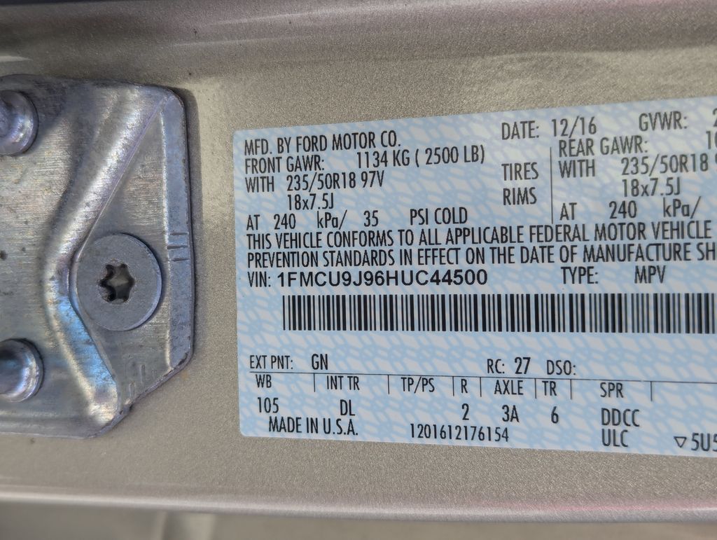 White Gold Metallic 2017 Ford Escape Titanium 4WD 6-Speed Automatic EcoBoost 2.0L I4 GTDi DOHC Turbocharged VCT 4WD.