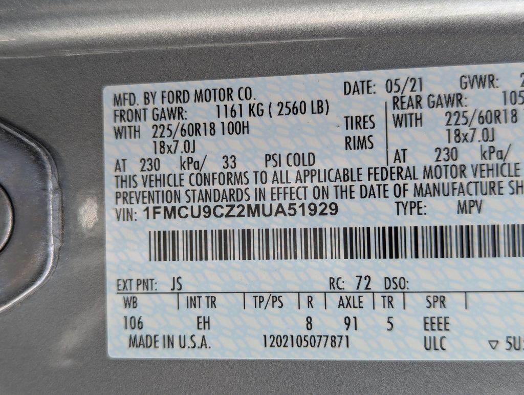 Silver Metallic 2021 Ford Escape Hybrid SEL AWD eCVT 2.5L iVCT 2.5L iVCT.