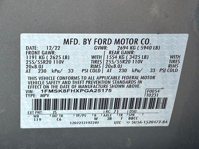 - Front tires: 255/55VR20.0