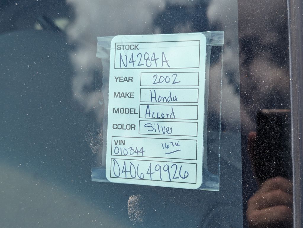 Silver 2002 Honda Accord EX-L FWD 4-Speed Automatic with Overdrive 3.0L V6 SMPI SOHC 3.0L V6 SMPI SOHC, Leather.