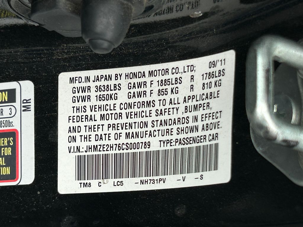 Black 2012 Honda Insight EX FWD CVT 1.3L I4 SOHC i-VTEC CVT.