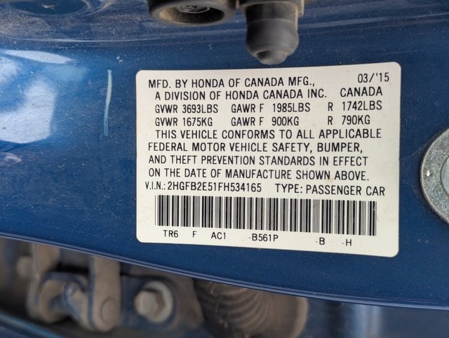 2015 Honda Civic LX FWD 5-Speed Manual 1.8L I4 SOHC 16V i-VTEC Cloth.
