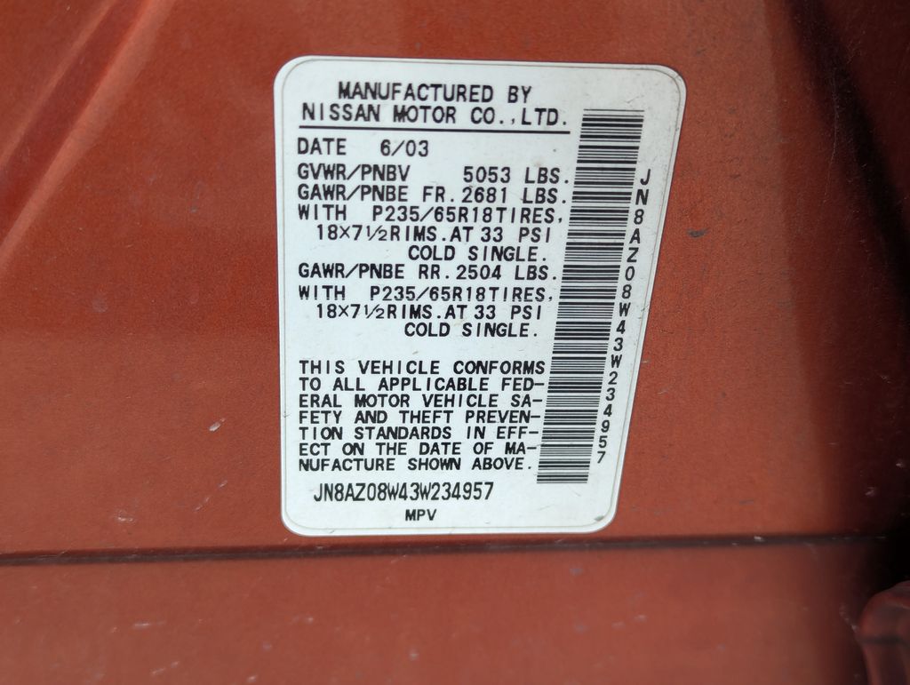Sunlit Copper Metallic 2003 Nissan Murano SL AWD CVT with Xtronic 3.5L V6 DOHC CVT with Xtronic, AWD.