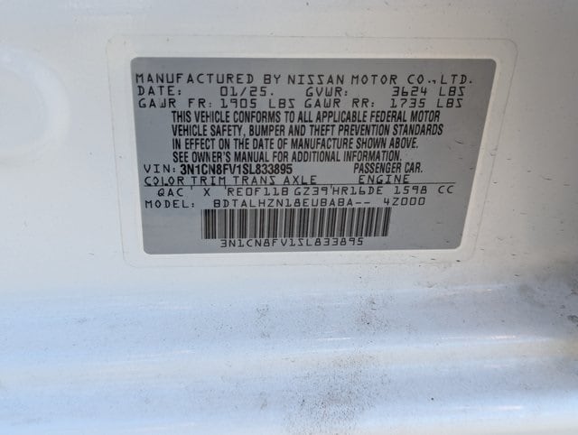 Aspen White Tricoat 2025 Nissan Versa 1.6 SR FWD CVT 1.6L I4 DOHC 16V