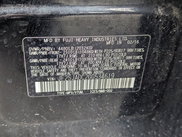 Crystal Black Silica 2016 Subaru Forester 2.5i Premium AWD 6-Speed Manual 2.5L 4-Cylinder DOHC 16V VVT