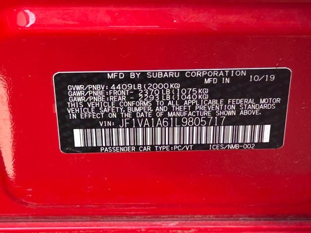Pure Red 2020 Subaru WRX AWD 6-Speed Manual