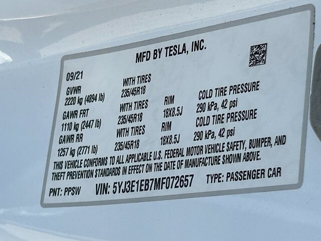 - 5YJ3E1EB7MF072657
