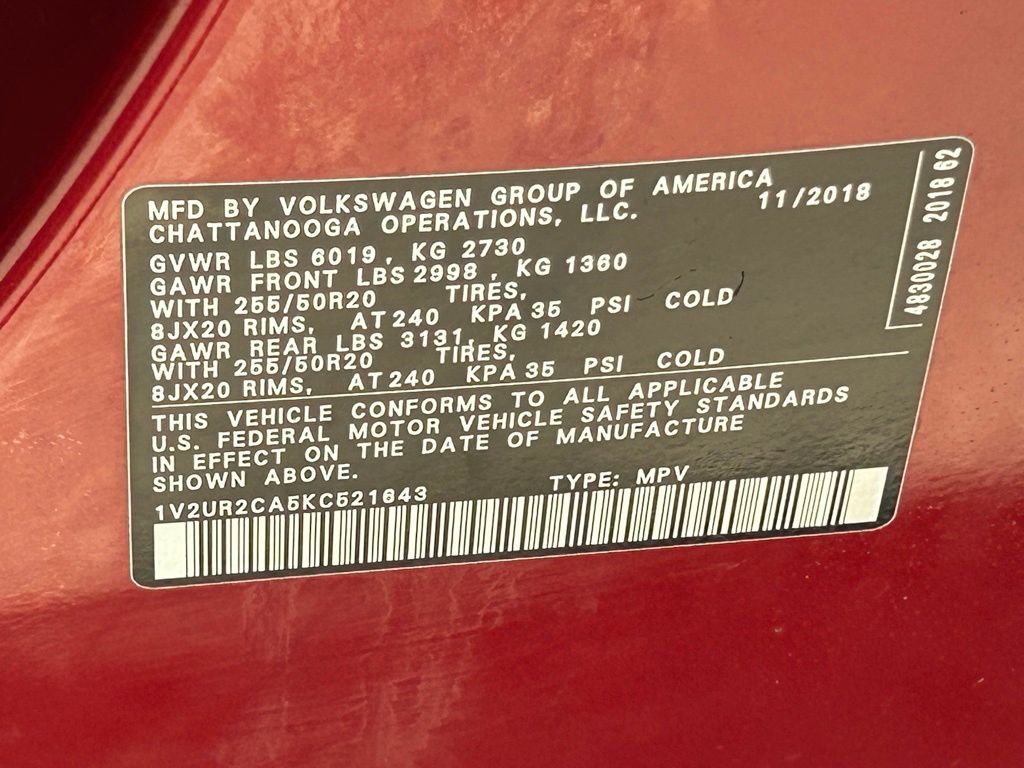Fortana Red 2019 Volkswagen Atlas 3.6L V6 SE w/Technology AWD 8-Speed Automatic with Tiptronic 3.6L VR6